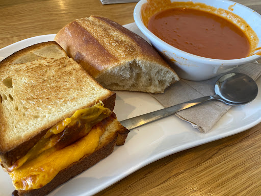 “Never get tired of panera” Some friends and I decided to grab a bite to eat and catch up at panera. I had a soup and sandwich. They were both delicious. I cant get tired of this place. Love their rewards.