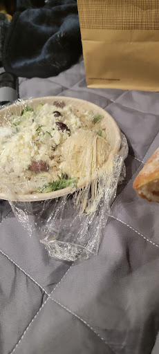 This Panera sucks. 1. Didnt have gouda for my wifes sandwich, not a big deal by itself. 2. No arugula for my sandwich, still no biggie. 3. After ordering staff came to tell me theres no cheddar cheese for my sandwich, do they know how to order supplies and what did I just pay for? 4. My brownie is rock hard on one side. 5. My coffee was full of grounds, again the price doesnt justify the quality of their food.