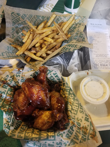 This is the worst wing stop Ive been to they have the worst costumer service I placed an order online got there 25 min later waited in the line for 10 min for them to tell me they didnt see the order. Then said they would make it if I wanted to wait longer??!! As this happened 3 costumers came up and were upset theyre order was wrong. Go to a different wing stop save you the bullshit!!