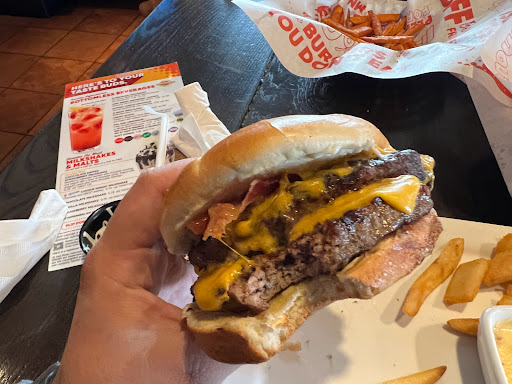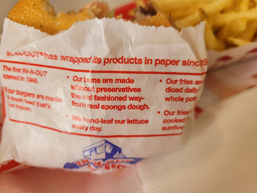 This location has seemed to have gotten a little quicker with filling orders than they used to be. Drive thru still backs up alot taking up a giant portion of the parking lot though when theyre busy. If youre parked in the spaces in their lot and the line backs up, good luck getting out. Food is of the quality you would expect from in and out and customer service is good. Not sure if its just me but every time I come here and eat, I freeze to death. Seems like the a/c is always on full blast. Figured it was for employees sake as it most likely gets really hot for them in the back due to grills and all that.