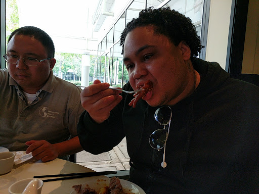 Went for lunch my mom, my brother and his tween for dim sum. The sweet rice dumplings were good and without the cursed dried microshrimps that some restaurants like to put in them. The soup dumplings (xiao long bao) the metric of any dim sum or Shanghai restaurant were sad things cooked in mini tart tins, had too much ginger and no detectable soup. The beef chow fun (wide rice noodle) was excellent with tender beef that was still thoroughly cooked (a combination not always easy to find). Even though it looks like there are roaming carts, theyre just the delivery system, you must order everything off of a checklist menu which removes some of the expected ambience from a dim sum place.