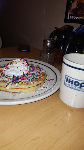 Good service and IHOP food. ;) Sad they took my favorite meal off the menu though. This happened years ago and I still crave the cheese blintzes.