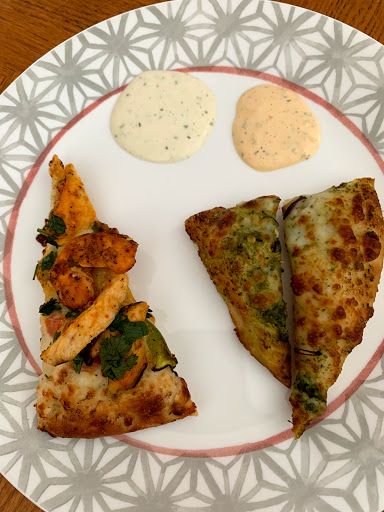 Ordered for a take out: 1. Aloo chat pizza 2. Chicken tikka pizza Both were quite hot. Ready by the time we reached. When we reached there around 3.30pm. we didnt see a single customer in the whole place. Our confidence level went down right then. After a while when we started having the pizzas we figured out that we were wrong. The taste of both the pizzas were awesome. To be honest we hardly needed any extra cheese or flakes to enhance the taste.