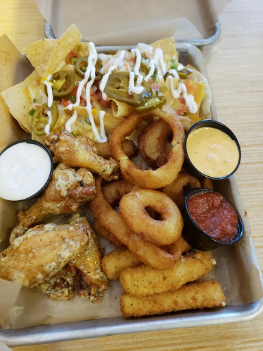 I only go on Tuesdays, so this review is only for Tuesday nights... for the inexpensive wings. They are great. The onion rings are also the best Ive had anywhere. But this is also when everyone else wants cheap wings, and this location has not figured out how to deal with the demand, especially when a game is on (it gets very loud too). Not sure who is to blame, but the wait time to be seated is about 30 minutes on average after 7pm, and after you order your food it takes another 30 minues to an hour for it to come out of the kitchen. Granted, they do warn you about the wait ahead of time. Ive started to order the wings to-go, and giving myself an hour before I leave to pick them up. It seems like many people have started doing this as well since the wait times for to-go orders have been increasing. Maybe some day theyll figure out a way to work the crowds. Its my favorite wing place! But make sure you have some time to spend.