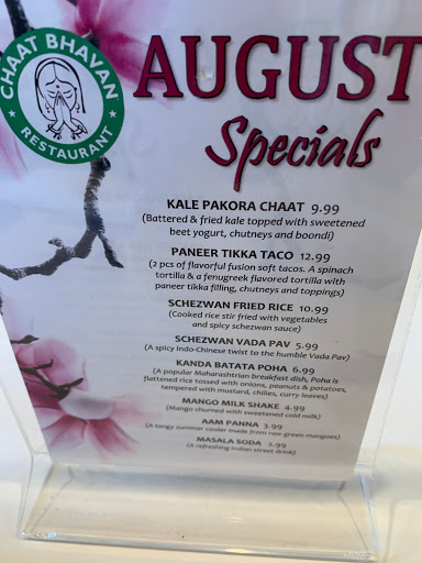 chaat bhavan has excellent food at a great price. i love their large menu and fast service and the staff, they are just amazing and very friendly. some people might think that the food is not good but from my experiences at eating at multiple restaurants i believe that chaat bhavan is one of the best. some orders that i found delicious are the bhel thali that includes 2 entrees, rice, dal, 2 rotis, papad, pickle, yogurt, a dessert, and a drink, this thali has eveverything. another dish i found delicious was their harah bara paratha which was stuffed with all sorts of veggies and is very healthy, and that is good for me because i never seem to like vegetables so this paratha is perfect for my taste. one other dish that also i love is the snack combo which comes with 2 chaats, a drink and papad, now that chaat combo is a very large portion so its great if your really hungry. these are just some of their great dishes that i have tried but i will be going back to try on some new ones.