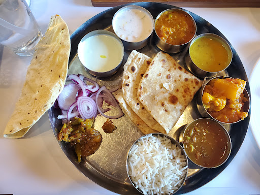 Lame Service...we had to flag down a waiter everytime after our initial order. Even for the check. They took 20+ minutes for our food, which was fine but when we asked how long it would take if we ordered another round of parathaa, the waiter said he would go check in the kitchen and never came back. The only time they came back quickly was when we asked for the check. Food was alright, nothing extraordinary. Chili paneer had 1.5 peices of paneer in the thali and about 300 times more bellpeper than it should have had. Chana masala was along the lines of something I could make myself at home. The place is more like a mom and pop owned dhaba than any chat. Dont be fooled by the look. If you eat here plan on normal food and low service. Also I called them before going to ask if they had Wifi. They said yes. I went to eat and do my work, turn out wifi was secured and when I asked they said it was for owner use only. Pretty lame.