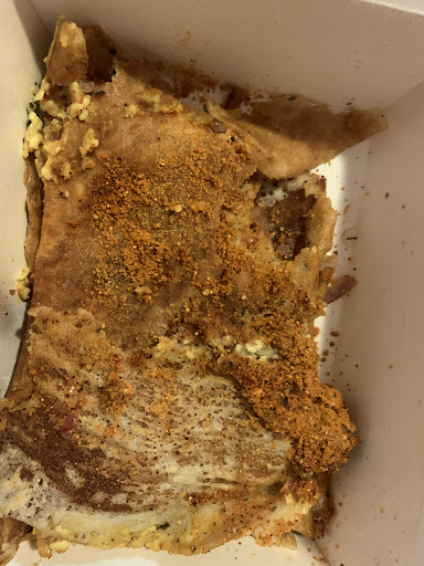 One day I was bored of life. Bored of everything. Wait thats not right. I was just bored of the food around where I live. I tried Amazon Locker once and when I tried to pick my stuff up I found this place. The name caught my attention, especially since Dosa in Indonesian means sin. Hmm.. Yeah probably there arent any relations. Anyway I went in and told the guy straightforwardly. I dont know what I want. What do you recommend me? He asked: Do you want Dosa? Eh, sure, why not. And Im glad I did. The food was good. Its basically some kind of pancake filled with veggies and meat. It was quite spicy though, so if you dont like it, beware. I personally love it. You eat it with the mint and brown sauce that comes with it. Will definitely go back.