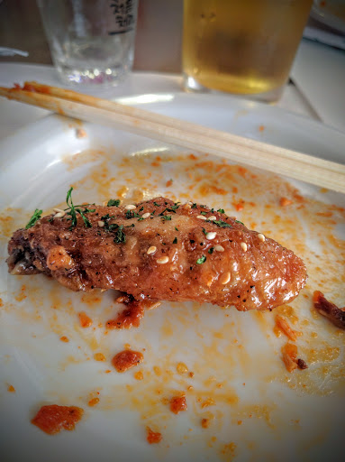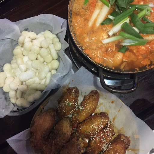 Top notch Korean fried chicken. Their sweet and spicy is notably tasty. Its fried to the point where Ive eaten parts of the bones because the batter has turned it into a crunchy snack on top of the chicken. Their tteokbokki is also a great side dish that packs heat over time. Do note that this place is ideal for groups and that the serving portions reflect this.