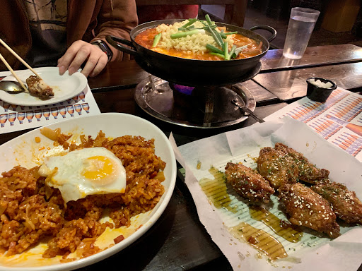 Really good food. Korean Fried chicken, and kimchi seafood soup are must tries. Drinks are good but no yogurt soju. Long wait if youre going Friday or Sat late night