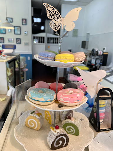 I had some sort of expectation for La Farfalla Bakery due to its positive reviews/ratings, and this bakery definitely surpassed it! INTERIOR/STYLE: Super cute, super clean, and super organized.. Its a small space unfortunately, so the selection is limited. Despite that, I had no problems finding a few things to try. Each type of pastry is clearly labeled and individual plates are already covered for you to use. In the same fashion as a bakery such as ShengKee and 85C, you grab a plate, a tong, and then browse around. Then you bring your plate to the cash register and they will bag your purchase for you. SELECTION: Todays selection was really good. Theres a mix & match cookies section thats ~$4 per 1/4 lb of cookies. Then there are some pastries that are sweet, some savory. Since I already got a box of cookies to satisfy my sweet tooth, I went for the savory pastries. Theres also a separate section of mini macarons priced @ $1.85 each. Then theres a refrigerated section for mini cakes and special occasion cakes. Look up, and youll see a simple menu for your boba fix. MY PICKS: - Takoyaki pastry: Dont be fooled! This is NOT made of octopus. Its actually a pastry filled with pork sung (dried pork) and garnished with takoyaki-styled toppings. Very tasty, and would definitely buy again. - Butter Cream pastry: A pastry filled with butter cream, was fluffy and sweet, with a hint of saltiness. - Ham & Veggies: Not really "veggies," more like ham and corn.. Though I supposed corn is a type of vegetable. This is a good-sized pastry topped with chopped ham and generously covered with corn and some sort of mayonnaise dressing. Slightly savory, not super salty. Yum! - Assorted cookies ranging from the cookies with jam centers, Russian tea, chocolate walnut, etc: I loved the cookies here, they are not too sweet and most are bite sized. Good for sweet cravings without the impending sugar crash. They are priced per 1/4 lb and you can mix + match. - Chocolate croissant: Small compared to croissants Im used to. While this was pretty good, it was my least favorite out of everything. Compared to Starbucks chocolate croissant, which is toasted when you order, this just cant quite compare. Also gone within a couple bites, this wasnt very satisfying. - Macarons: These are smaller than average macarons, but also slightly cheaper. There is a check-in offer for a free macaron that I used. The one I tried was Jasmine Green tea, and it was yummy. Not too sweet, but didnt really taste much of tea flavor. Delicious to indulge in, regardless! - Sea Salt green tea: Hm... Where was the sea salt... The tea was kind of watered down, but overall it wasnt bad. I wasnt asked about sweetness level, but it was at a tolerable level of sweetness so I didnt have to. There was no extra layer of sea salt, and it looks like it was mixed in for you... Probably try a different drink next time. Final thoughts: Quality pastries/dessert, no crowd, comparable to bigger bakeries, if not better. Hopefully this place stays open (pretty empty in terms of patrons...) because I will definitely will be back.. I live really close, so itll be very convenient to grab a pastry on-the-go!