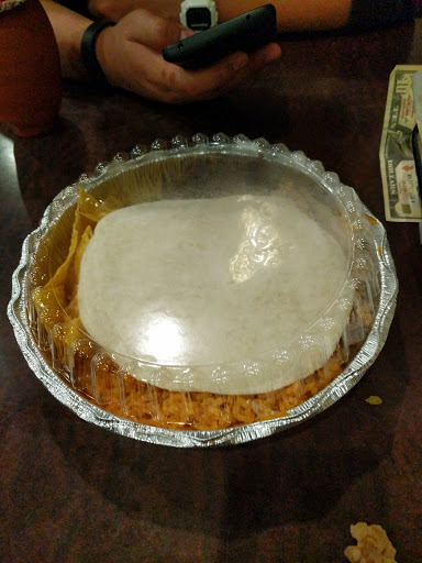 The restaurant is unevenly decorated with scenic wall paintings but spray painted, falling apart ceiling tiles. Also, it has a bar with TVs in same area as the main dining room. The chips and salsa are good. I enjoyed my enchilada and taco, cleaning my plate of the rice and beans included for the dinner.
