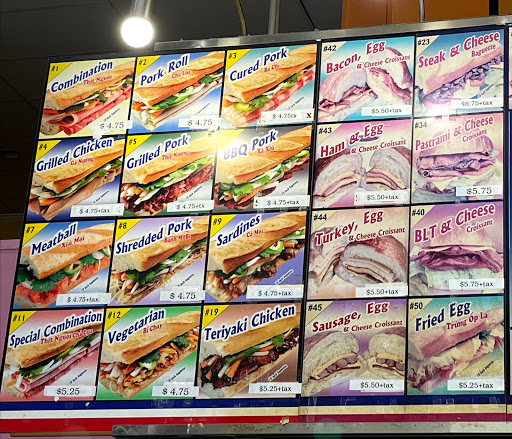 Weve been coming here awhile to get our fix of Vietnamese sandwiches. Sandwiches starts at $3.25. Food is tasty and the service is fairly quick. My two favorite sandwiches are shredded chicken (#14) and steamed pork roll (#2). Weekday lunch can be busy, but generally slows down after 12:30pm. Highly recommend this place if you are looking for a quick bite that wont break the bank.