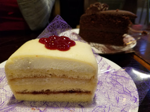 Stopped by after having dinner at Applebees with 3 friends for a little desert, was asking some simple questions to the guy behind the counter, I.e. Where is the pastry baked - in house or a main kitchen, is it fresh baked everyday, do you make your own puff pastry in house, its the carrot cake pretty moist, "he stated that it was," seemed as though he didnt like the questions. I really thought that the carrot cake looked really good and asked if the frosting was on the thicker or creamy side. ( I prefer the cream cheese frosting to be on the creamy side and not so thick). His wise ass answer really pissed me off when he told me that, " well it is made with cream cheese"- really. And what the hell does that mean - and then went on to say that I should be careful or he was going to throw me out of the store. Should have known better and saved him the enjoyment of throwing a customer out just for asking some questions and just left and not spend my money their Needless to say, we all ordered a sliced of cake, I did get the carrot cake, l thought that it was pretty dry, more like it was yesterdays product, and it really reminded me of fruit cake. Didnt finish it. Oh, by the way, Im not currently a pastry chef, but have been and have made ever product in that store, to include puff pasty by strach