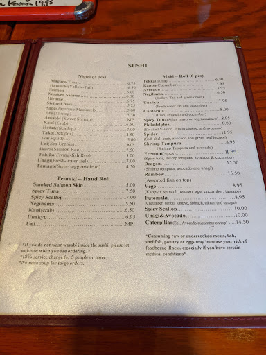 Seated immediately. Courteous staff. Clean restrooms. Reasonably priced. No standout dishes that I tried, but my companion says the spider roll is top notch.