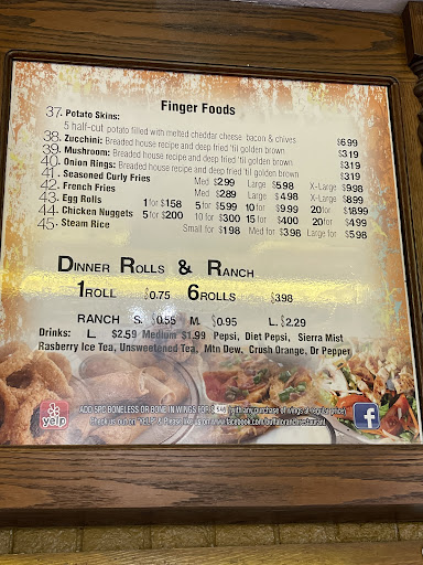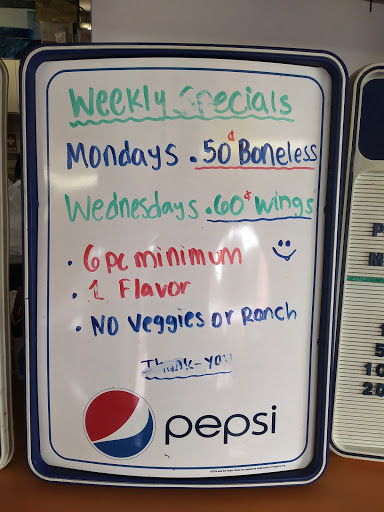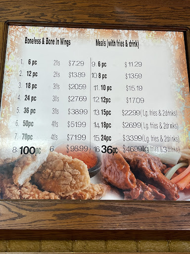 Really delicious food. The boneless wing special on Mondays are big pieces of chicken for .55 per wing with 6 piece min. I bought 20 pcs and full at 10 pcs. My wife had the mushrooms and were also big for $3 well worth the price. Clean area to eat. Restroom clean and well maintained.