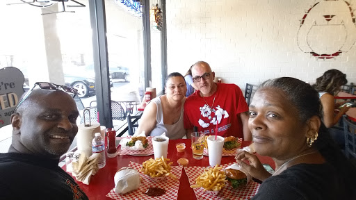 A bit pricey, but really good tasting burgers. College Students get a discount. I recommend the Jr. Bulldog burger.