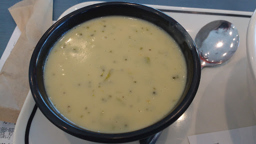 Overall staff are friendly. I bought there broccoli and cheddar soup delicious but the bread that was given was extremely doughy and quite small. Overall this place is pretty good.