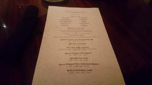 Love Richards for steak! Great old school steakhouse. The bar reminds me of the Sixties and seventies and thats good! Had a Cucumbertini in and it ROCKED. Filet mignon with baked potato and Richards old school beans and garlic bread. I am so happy and full.