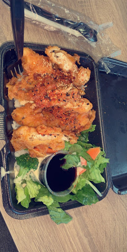 I order the spicy teriyaki chicken [ some kind of fried chicken katsu thing lol] Its actually not spicy (for those who like alot of heat) so i always make sure on the right side they have cups to put stuff in i make sure to scoop alot of the red powder into the cups because when you sprinkle that onto the chicken it definitely brings the heat! I ALWAYS ALWAYS order to go. Theyre always so busy that if youre in a hurry you might have to wait awhile. Definitely give this place a try! Also if you like alot of food just ask them to add on the extra meat. I forgot the price for extra meat but it is worth it! They give alot as it is but with the extra you could share it with someone else ( theres that much food lol) The staff are honestly super friendly just keep in mind theyre super busy all the time so theyre never rude just BUSY (keep in mind for those who think theyre rude) I personally dont like the fries here because the time i got fries i think they cooked it in a fryer were there was a seafood item because i could taste it (but thats what happens when you go for asian food and get fries lol) but besides that everything here is amazing