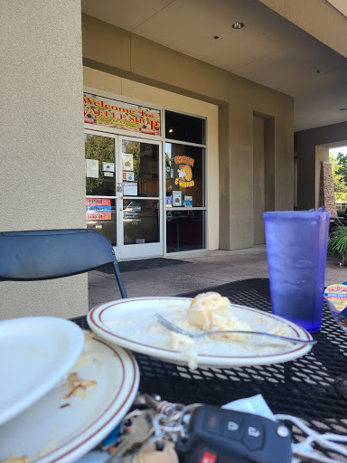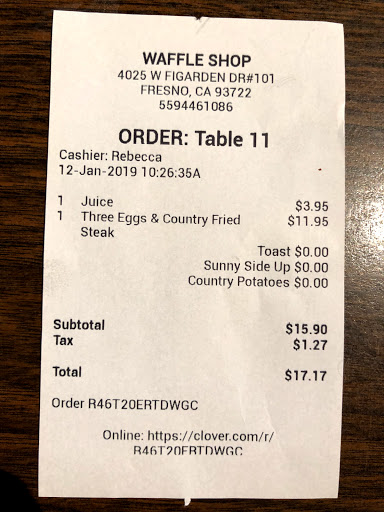 I have 3 stars because I think it could have been better all around. My son had a dentist appointment across the lot so aftwards we stopped in for breakfast. I looked the shop up on Google before we went. Just to read some reviews, menu prices and such. The prices were good, not too expensive. Once we grabbed a seat and got our menus, the prices were off, by a couple dollars, online it read prices around $5-6 a plate, the actual prices were around $8-9!. The waitress was very cold with her greeting and mannerisms. She only came by once to see if everything was ok. And they didnt have a lot of what we were wanting to order. My son wanted a strawberry waffle with vanilla ice cream and a chocolate milk. But they didnt have any ice cream nor chocolate milk. He ended up with a regular waffle with strawberries and whip cream with a hot chocolate (mind you, here in central California its 105° today). I ordered the waffle combo. (1 waffle, 2 eggs and 3 sausage links) and an iced tea. I ordered the eggs scrambled, they came to the table cold with the sausage that looked burnt. My bill came to $49.81! The only time the waitress was polite was when I was paying the bill. I dont think we will be going back there. It really was not worth $49 for my 14 year old and myself. Especially since we couldnt get what we really wanted to eat. Needless to say, I did not leave a tip.