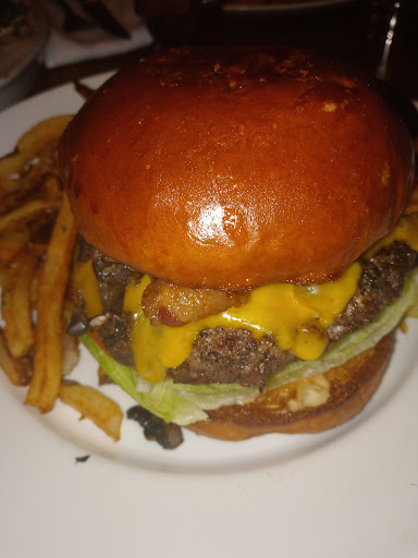 The atmosphere in this straightforward, few-frills steakhouse is a little distracting. A collection of Sing-along pop songs is played just barely too loud. Carly Rae Jepsen was a poor companion to my prime rib. The steak nachos were wonderful tasting, and everything being fresh. I ordered a rare prime rib that was perfectly prepared. The sides (fries and green beans) were solid. My wifes ribeye was exactly medium rare, and was delicious. Her baked potato wasnt cooked all the way. The decor is a weird blend of castle and cabin, which made me feel like Frodo. Naturally, I asked if the beer came in pints. It does. The draught list is nearly bare for a beer connoisseur, but it has the "getcha drunk" standards. Lots of booth seating, though you can feel the movement of neighbouring booths in the cushion of yours, which is weird.