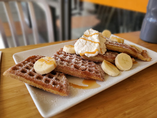 Didnt enjoy anything we ordered, pretentiously made, nothing genuine or authentic about their food. It sucks to screw up a true classic like Chicken and Waffle, chicken cut into small strips instead of large juicy pieces on the bone, and the batter was horrible more fitting for frying livers instead of white meat. Waffle was again horrible, incredibly greasy, not fluffy, out of shape too. They probably pan oil fried it instead of making it correctly. The food was so pretentious, had no taste, greasy (hiding the small portion and high calorie with Salad greens on top was supposed to do what?), and way too expensive for small portion. Ppl in CA have no idea anymore how to eat or cook classic American dishes so this type of junk joint gets away with it. Charge the money if you can make it right, having no taste and being extra greasy is just bad.
