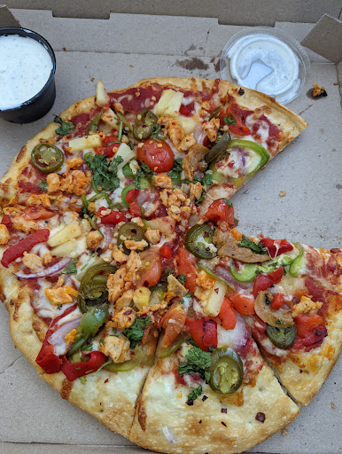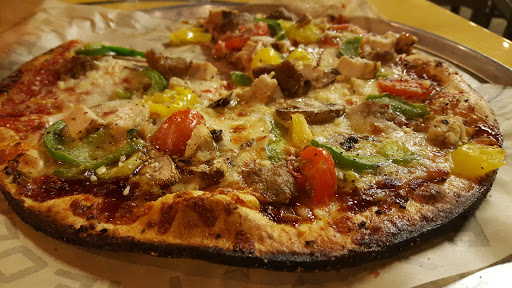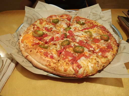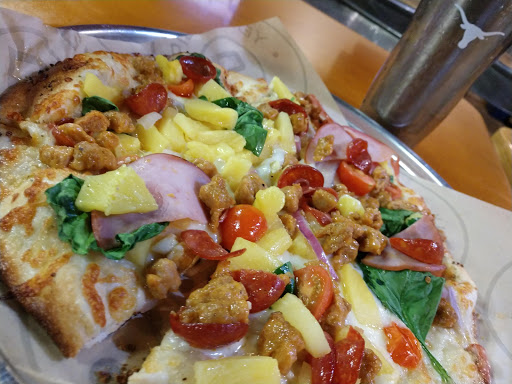 Thinking of having a nice, crispy, juicy, healthy, good for your wallet kind of meal? Well, Pieology meets all these requirements. Its like Chipotle for pizza. First, you get in line(which can be really long), and decide how many types of meats or vegetables you want on your pizza, then you can add 1 or 2, heck you can add all the meats and vegetables for the same low price of $7.50. The long wait can be daunting, but the speed at which you wait for your food is SERIOUSLY LESS THAN 5 MINUTES! I timed them, seriously less than 5. The food is ridiculously good, and the service is awesome too. FYI 1. While waiting in line send someone to get a table because space is rather limited. 2. No tomato unless you want your pizza a little wet.