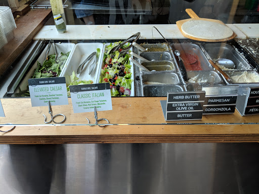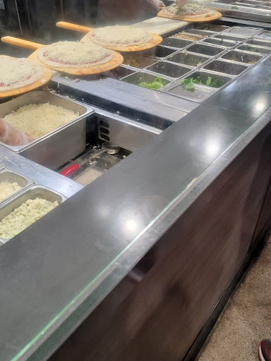 I love Pieology, especially this location. Ive never had a bad experience here. The only thing that came close was the one time where the line was so long that it went around the restaurant and through the back exit door and I had to wait in line next to the ramen place next door, but that shows how good this place is. I like how you can have your pizza your way. The cinnamon dessert is also something that I highly recommend. The staff here are really courteous and helpful, the atmosphere is very chill, and parking isnt bad at all since its in a shopping center parking lot. I definitely recommend this place.