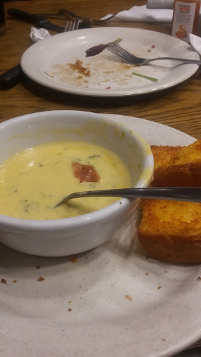 Food was good and properly prepared, the baked potato was large and came with plenty of toppings. Salad bar was well represented with a large variety of goodies. This is my fourth time having lunch here and will not hesitate to return.