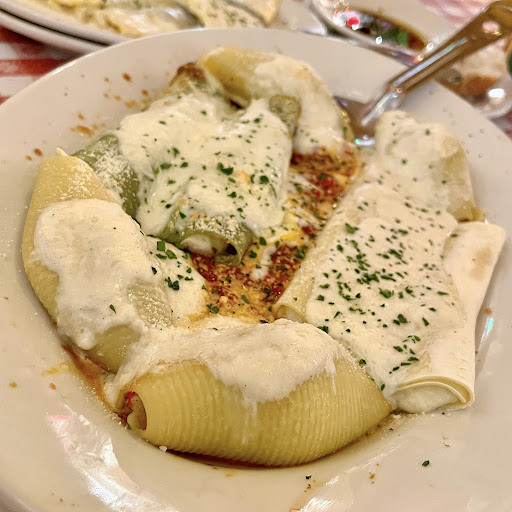 Everytime we stay in Anaheim to visit the many theme parks in the area we take that opportunity to dine at this restaurant on at least one or two occasions. On this trip we tried to just walk in but wasnt successful because it was packed! We made reservations for the following evening. We arrived to another packed house but was guareented a table. We love this place because of the food and the way its prepared home style. We also like to walk around the restaurant and look at all of the numerous pictures and paintings that decorated the interior. This restaurant can accommodate large groups to small ones like ours and has that family atmosphere. We have tried almost everything on their menu but our favorite dishes are the "eggplant parmesan and the spaghetti with meat sauce." Their small portions can feed 2-3 people but we always take home what we cant finish, which is almost everytime. We also get their house salad and bread is usually included. I love their spaghetti sauce and have purchased their homemade sauce to take home. We always try and ARRIVE hungry and leave satisfied and full. We definitely recommend this place for families on a budget.