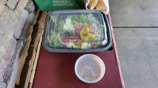 Havent been here in a while, and the last time we were, the server was better. Our waitress, Demi, gave off a strange vibe, at least we perceived that. She brought out a basket of cold bread. When she returned 10 minutes later to take our order, I asked if Buca normally served bread cold with no butter. She said that they do, as it comes with oil & vinegar ( which she just hadnt gotten around to bringing yet). She said it in a tone which sounded like she was perturbed that I asked. The food was good, just overpriced. Ive been to this location before, and the service has been pretty good. This was just an experience that didnt meet out expectations. The next day we ordered a small pizza for takeout. For $16 we received a pie that was pretty small. Sure they say a small is 9 slices, but the slices are rectangular shaped.