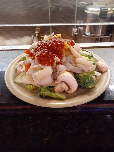 FOOD/SERVICE HORRIBLE OVERPRICED for what they offer and service. We researched a few places and decided on this buffet. Walking into the restaurant it seemed ok. It wasnt busy so we decided to try it out. SUSHI was terrible. The avacodo was brown and it looked like it had been sitting out for a while. Its a SEAFOOD BUFFET but the sea food was horrible also with maybe the exception of the noodles. The rice was crunchy and hard. They offer Mongolian but they shut it down way before closing so we didnt get try it. Service was horrible also. We had to keep asking for refills and track down the server. When she left to refill our glass my daughter realized she set down our glass next to cleaning solution and rags. Dishes and silverware were also dirty.. not just water stains either. Along with getting a drink spilled on me by the server I would definitely not recommend going here. The only thing we enjoyed was the ice cream, literally!