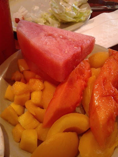 Food was good. Saw folks eating big ribs as my wife and I walked in. 4 Pros and 1 Con; The cold food zone got extra touches. Mango cut bite sized with skin off. The Watermelon was wedge cut with the rind trimmed off. The cold cocktail shrimp was deveined and peeled to just the last tail fin segment. Most other buffets usually let you peel the whole shrimp. The cooked food was also good. Price is a good value near Disneyland. Downside: They need better dishwashers. The empty plate we picked up for getting food were not all clean. Anyway, I would sift through plates that were not so clean from the dispensing stack until I got a clean one for getting my next round of food .