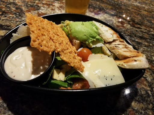 This place is conveniently located in the Hyatt. Usually a place like this gives the impression of lower expectations. We ordered their California Burger with fries and Parmesan garlic wings. They used a grade A lean burger - you notice the quality as soon as it hit your palet. It was set on a bed of arugula and avocado. The brioche bun was perfectly grilled with butter. It was one lean burger. Some burgers cause you to be overwhelmed by the fat - with this burger you were hit a sense of quality which enabled you to pickup on all the flavor actions. Their Parmesan wings were slamming. Nothing soggy, or greasy - just a nice crunchy hit. This place is super convenient, open late with fair pricing.