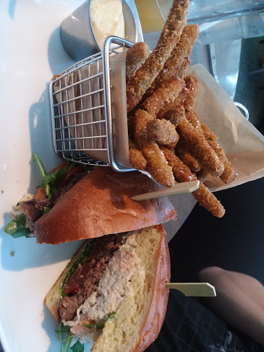 We both had the blackened salmon sandwich and it was great. Good quick service. Didnt try their brews, however.