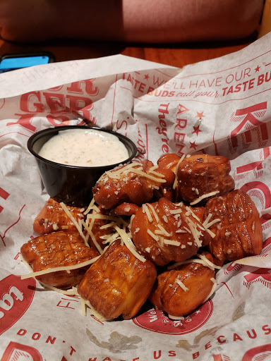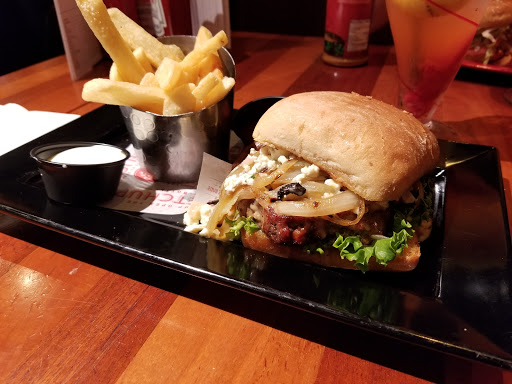 Over and hour wait for our food and appetizer . Other tables got their food before us. Waitress came and said they were backed up and offered us a complimentary appetizer that never came. Two salads and a burger should not take that long, small table of 3 not 10. All in all we spent almost two hours for a "quick lunch". Waste of time and money. I asked the manager a question on a menu item and he offered no compromise on a price, acted as if i was lying and didnt matter. I will definitely not go back, ever! Worst first visit to this location!