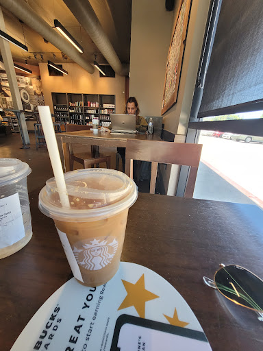 Hit or miss, but it seems like the employees act like they can get away with a lot of their attitude since Starbucks is the only establishment in that plaza right now. Not friendly, dont greet, messy drinks and they chat to each other a lot while ignoring the customers.