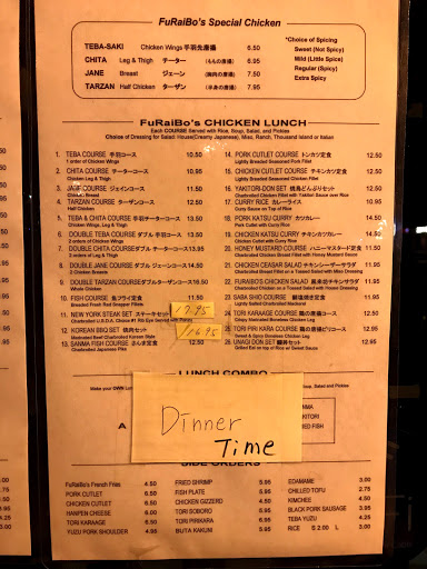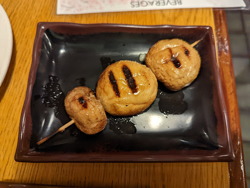 I came here with my group of friends for the first time a couple weeks ago. Most of them had been to Furaibo before and recommended getting the chicken wings. I went with the wings combo. We also ordered a couple of appetizers ( chicken gizzard skewers, cheese & fish cake, fried shrimp) to share. My favorite was the fish cake with the cheese filling. It was delicious. Id skip on the gizzards and shrimp as those were dry. The wings were fantastic. It was moist and i loved the glaze on it.