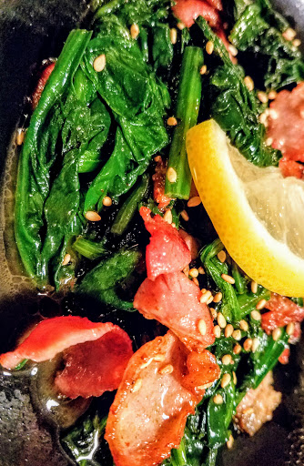 Great! Hanpen cheese was very special- crunchy on the outside, cheesy fluffy on the inside, served with some kind of mild fruit sauce and mustard. We had wings, kimchi fried rice, skewered beef, bacon in sauteed spinach (crazy good). Big menu and im dying to go back