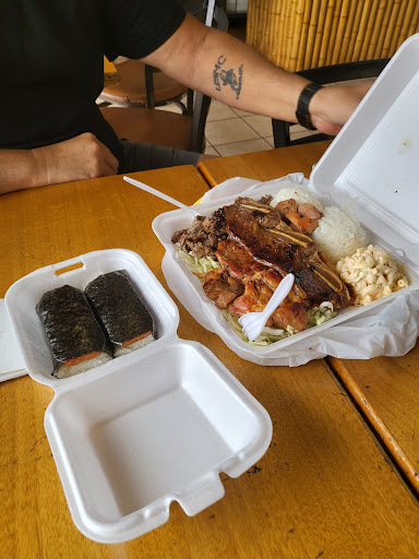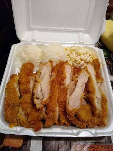 Katsu chicken! Macaroni salad! Hawaiian fruit drinks! The positions are great. I get a small and I can eat twice with it. Friendly staff working there.