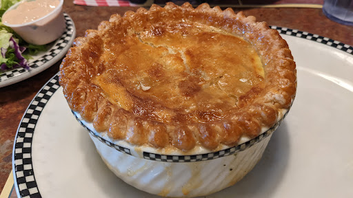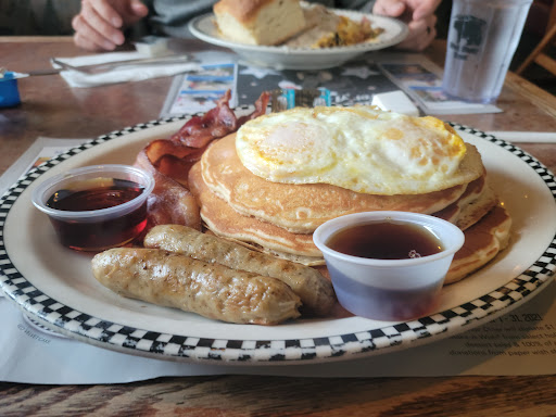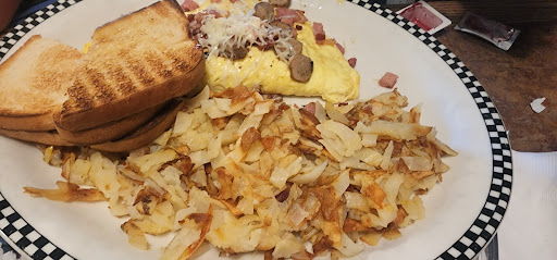 Great fast service. We frequently eat here bc our kids love breakfast 4 dinner. He sz portions even on the kids menu. Depending on waiter or waitress they can be slow at coming back to refill drinks, etc. Most the time all food comes out together & hot & everyones happy. Music is playing from jukebox that u can also add money into to play your song. They hand balloons to the kids & its hit or miss if after dinner they come around w a kids ice cream candy, fruit n sauce plate for their ice cream theyre suppose to get. Great pies, cobblers & BearClaws! Its constantly rotated so no worries there.