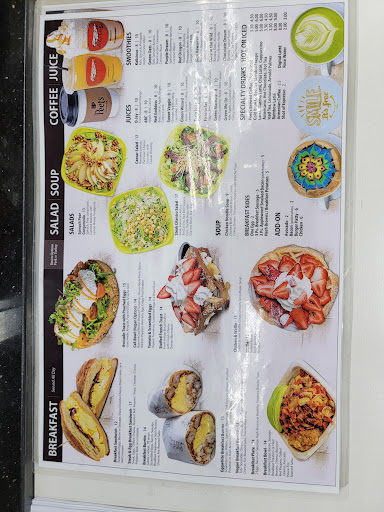 The cafe was a nice surprise. A friend and I biked there for breakfast. The menu is posted on the wall in a large, easy to read print, listing ingredients and prices. I ordered the breakfast bowl, which was delicious, but way more than I could eat. I easily could have split it with my friend. Both of us had leftovers! I thought the prices were very fair, especially because the food was plentiful and delicious. The only thing I would improve is the cleanliness of the eating area. It is outside and the seat cushions looked filthy and the tables felt dirty. The employee washing the tables used a dirty rag which basically just pushed the dirt around instead of really cleaning the tables. I will definitely go back for the excellent food but I recommend a lesson in cleaning to the staff working there!