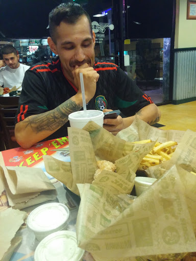 Extra well done wings with sweet tea! This location is right beside an El Pollo Loco, and quite hard to see when coming from the east as it is right by the corner. They have their own parking, and a pretty big place inside.