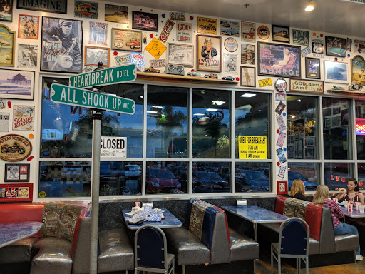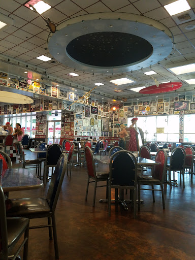A 50s themed diner, with a fairly broad menu. Tasty enough. Every Veteran"s Day, there is a great muscle car show there. Nice cars, nice folks, low key affair and cheap (as in free for the car show, not the food - duh!)