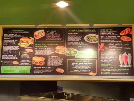 Overrated. Go down the street to Grandburger and get their burger combo. Its way better tasting and half the price. My hubby got the hot dog and it was mushy, no snap, just terrible. $9.00 for a glass of wine is ridiculous.