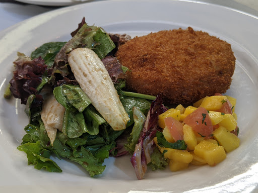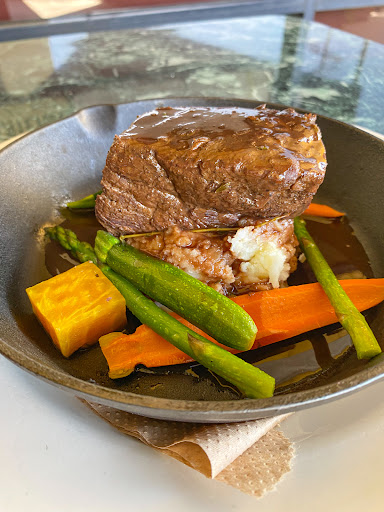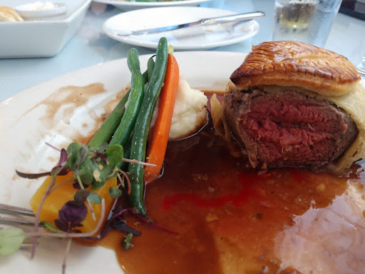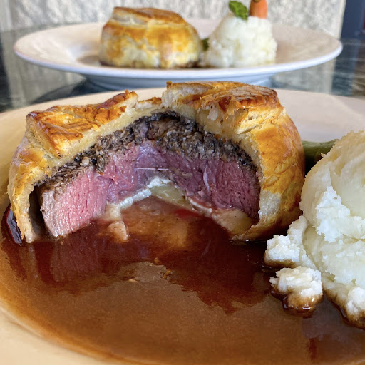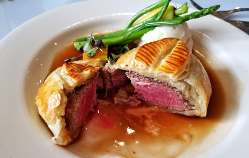 For lunch, the Signature Burger is amazing, a high quality burger. The Chimichurri Shrimp Salad is delicious, and quite different from shrimp salads found in other local restaurants. For dinner, my first choice is Beef Wellington, a lovely filet in a crisp brown pastry. It is usually one of the Dinner Specials, coming with your choice from 6 appetizers and your choice from 6 deserts. Or you can get an entree served with soup or house salad, like Pecan Crusted Chicken or Roasted Atlantic Salmon. This is gourmet food prepared by a gourmet chef in simple surroundings.