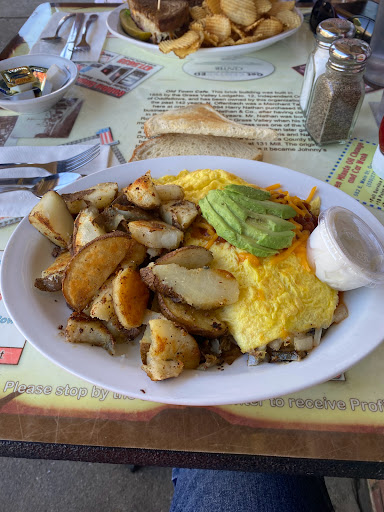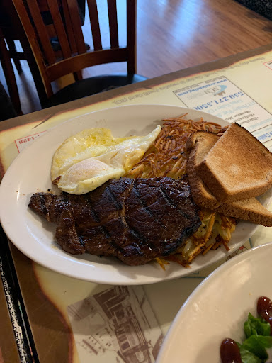 I live in town and visit several similar small diners locally. The food and prices at Old Town Cafe are similar to elsewhere. The food quality is about the same (how can you screw up eggs and pancakes right?) The quantity is amazing.Take a big eater here and hell leave stuffed. The pancakes do actually lap over the edge of the plate. They look like manhole covers. Corn beef hash and eggs is served on an oval serving platter...Never seen anything like it. Half the plate is loaded with country potatoes and the other with corned beef..The eggs are on top of the food because there is no room anywhere else. Coffee is non stop. The servers are efficient and friendly. Bring an appetite.