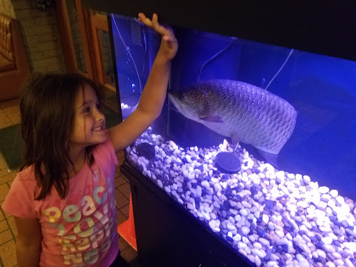 This place is amazing! They always have a fresh salad bar, sushi bar and hot food as well as soups. Make sure you talk to the Arowana - I think his name is Sushi - when you visit.