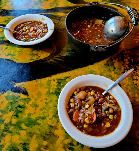 The decor is entertaining - done up like an old-style saloon and with animal heads hanging from just about every available wall space. Plenty of character and the kids had a fun time exploring. The food however, was disappointing. Every meal comes with their special soup with beans and salsa, along with salad, rice, potatoes, garlic bread, and a root beer float. There arent any options on the menu to avoid all these extras, and it was just too much food! The soup was probably the highlight. Both the steaks and ribs, while supposedly specialties, were really disappointing, and poorly cooked - we didnt even come close to finishing them. Overall, entertaining atmosphere but I wouldnt go back.