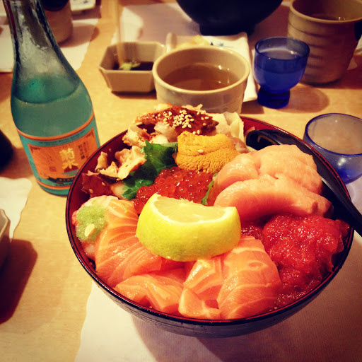 How have I never heard about this place until recently?!?!? OMG. What have I been missing out. I went on a date here - its nice and intimate, so intimate you can be holding and joining conversations with your neighboring table. Reason why its 4*s vs 5*s - the price of the Chirashi bowl. Granted its delicious and everything in there is Uber fresh and tasty, I just cant justify eating a $45 bowl of sashimi (with tuna, spicy tuna, ahi tuna, salmon, yellow tail, octopus, uni, 3 different types of roe, unagi) with sushi rice and tempura crunchies in there. Its frigging delicious, but $45. Im torn between saying that its a decent deal. Yes, the two of us struggled to finish it - but somehow we did. Just not all the rice. Also, the fish was cut just a weeeeeee too thick, it got a bit chewy on some pieces of fish. BUT you can really taste the sweet freshness of the sashimi fish. Also - we ordered an order of Uni nigiri. OMG - oveeeeeeeeeeerflow of uni. Uniiiiiiiii madness. So good, and so fresh. So sweet and delicate. eep. yumyum! Tips - Make sure you have a reservation. Ours was at 6:30pm and we pretty much got seated at the correct time and barely any waiting. Share rolls and the chirashi bowl Tiny Parking lot - but plenty of street parking. Its a bit dark and stuff. It gets hot in the restaurant, so bring layers - especially if its a cold night.